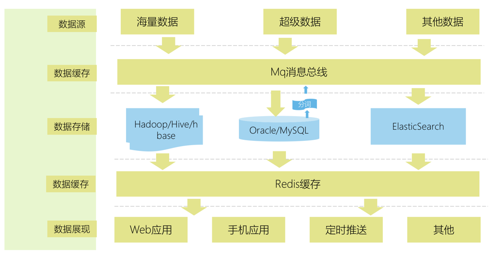 - 数据在大数据平台中,经过建模、整合、分析对上层数据产品提供数据服务。