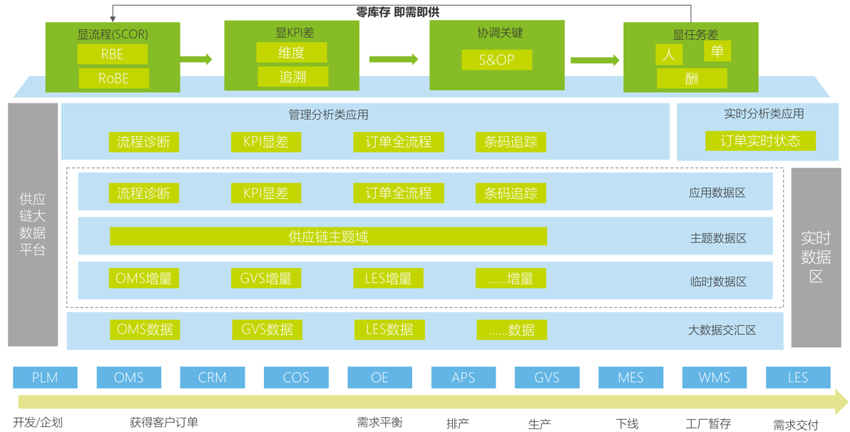该模块采用Oracle OBIEE,显示流程、显示KPI、闭环推进;后端采用Oracle硬件存放基础数据,并使用ETL工具同Informatica对数据抽取、清洗和转换。供应链SCOR模块架构如图: