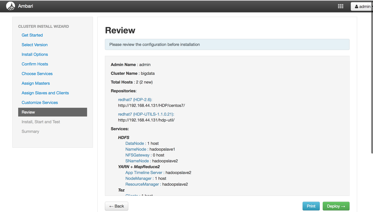 首先选择最新版本。接着填写ambria HOST:hadoopslave1,hadoopslave2。